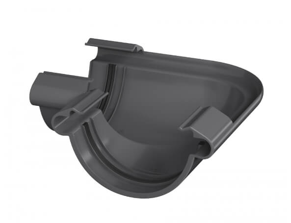 Угол желоба ТЕХНОНИКОЛЬ ПВХ МАКСИ графитово-серый – связующий элемент в водостоке. Используется, чтобы соединить желоба и корректировать направление потока воды.